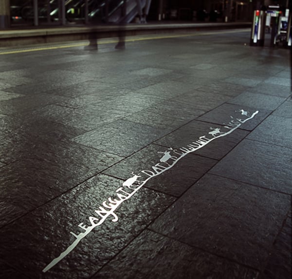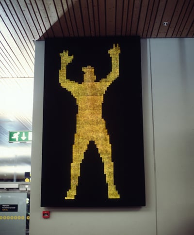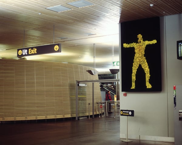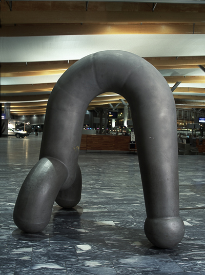 "Alexis" i avgangshallen. Serien "Alexis" består av seks skulpturer i rustfritt stål plassert i avgangshallen, ankomsthallen og på togstasjonen.