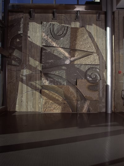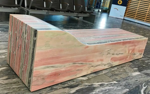 "Seng" er en marmorskulptur som er plassert etter passkontrollen. Marmoren er hentet ut fra et steinbrudd i Fauske.